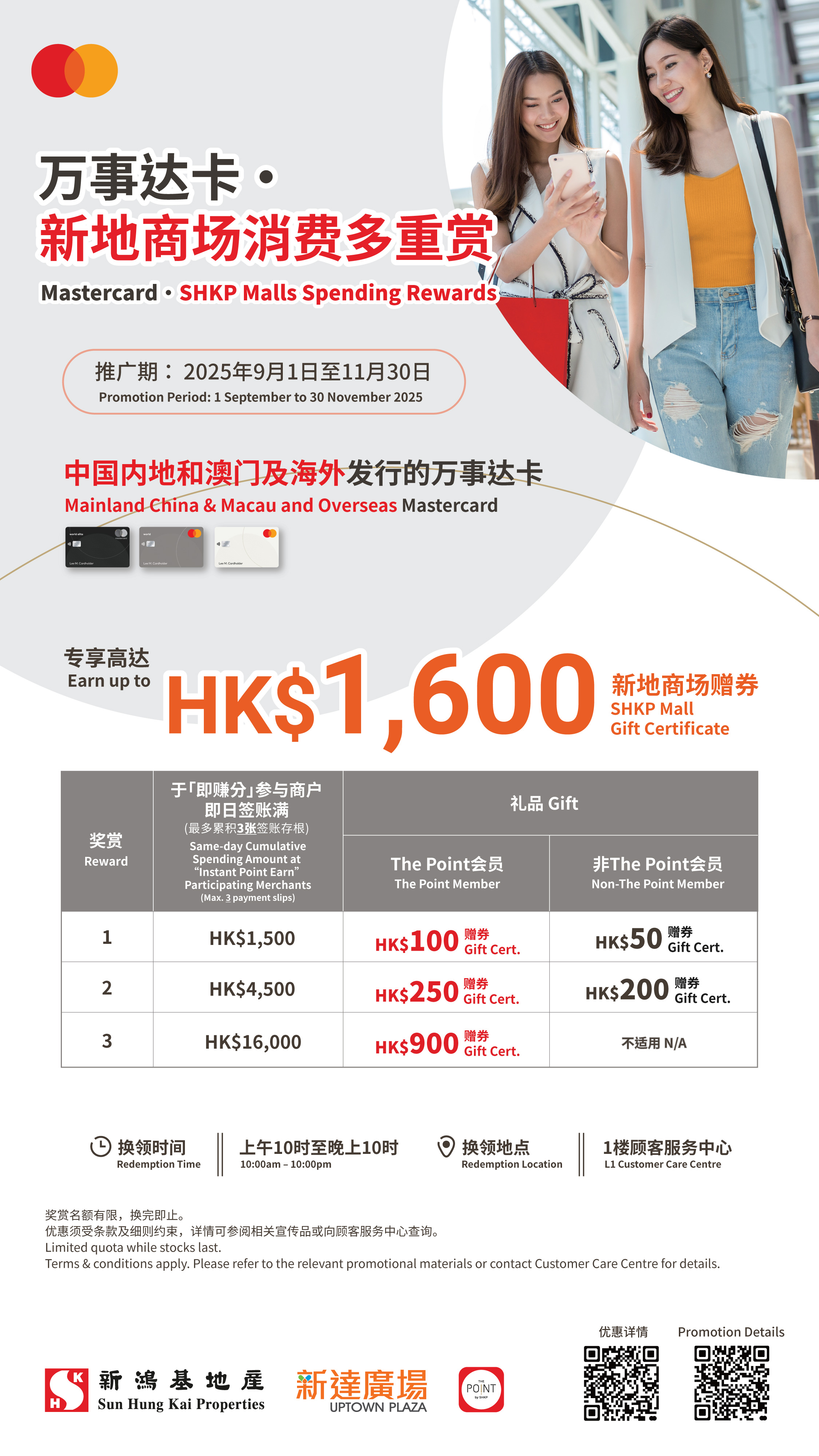 中國內地及澳門及海外發行的萬事達卡 • 新地商場消費多重賞